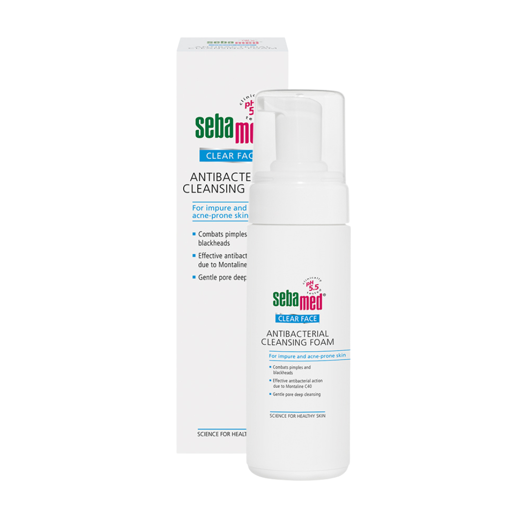 رغوة التنظيف المضادة للبكتيريا من سيباميد كلير فيس يساعد نظام العناية بالبشرة سيباميد كلير فيس على مواجهة مشاكل البشرة غير النقية والدهنية والمعرضة لحب الشباب. يمنع ويكافح الرؤوس السوداء والبثور ويعيد توازن البشرة