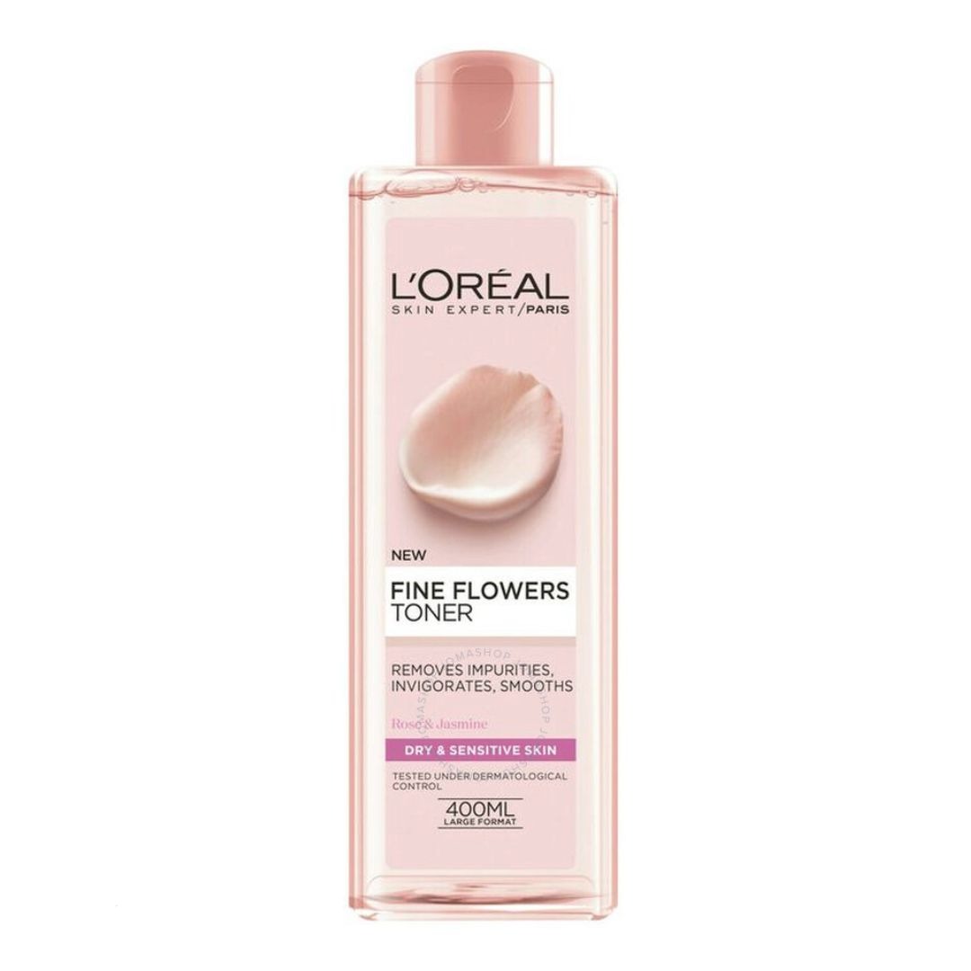 L'OREALFine Flowers Cleansing Toner 400ml The L'Oréal Paris Laboratories have selected and combined extracts of Rose and Jasmine Flowers, in a toner for soft, comfortable and fresh skin, every day. The fresh texture invigorates the skin and eliminates the