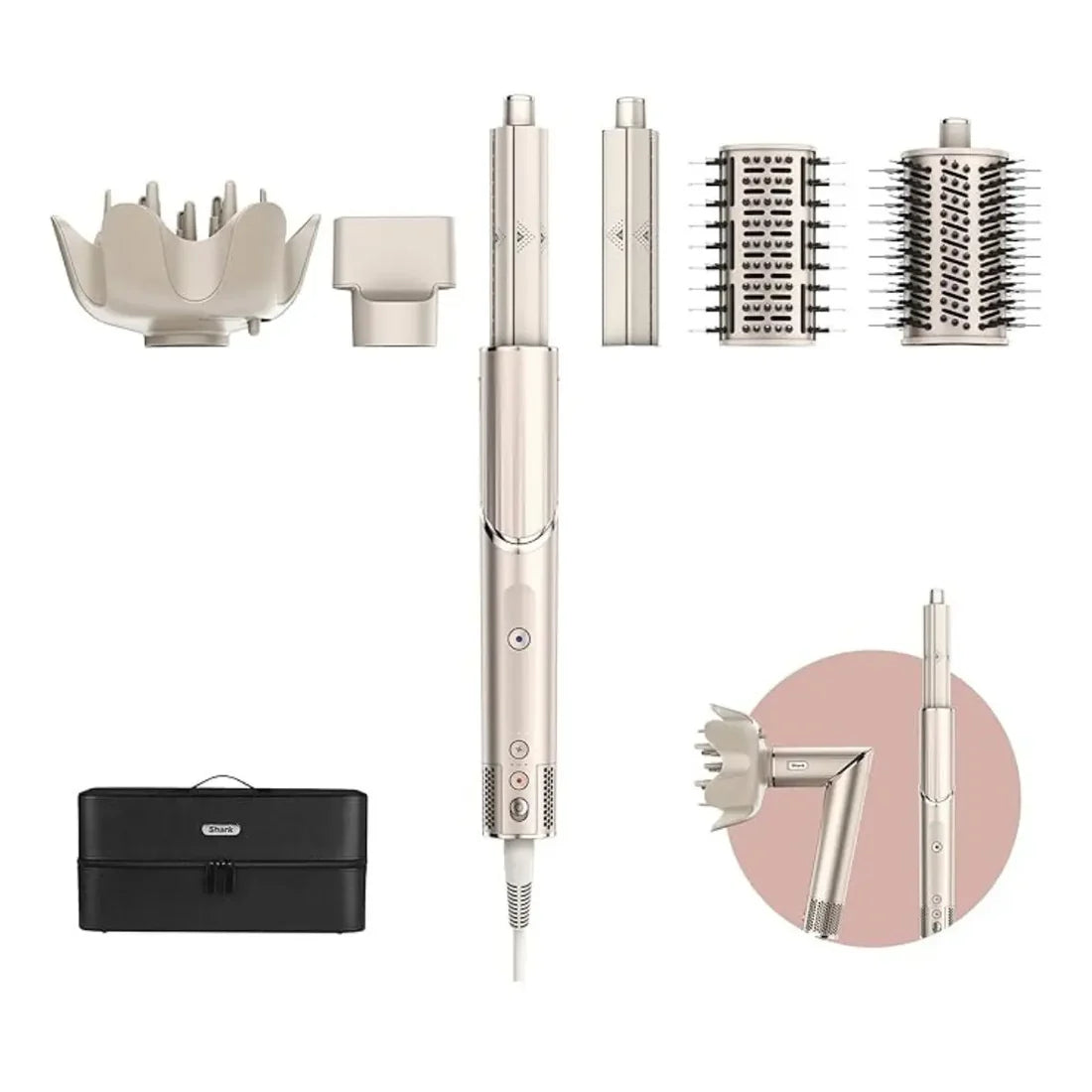 • Includes Auto-Wrap Curlers, Paddle Brush, Oval Brush, Concentrator, Diffuser & Storage Case